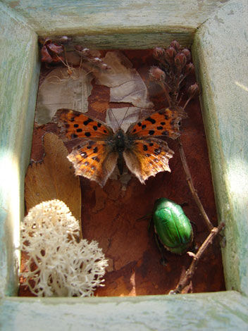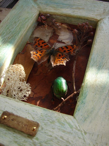 素材:キタテハ・アオドウガネ・ドライフラワー・古革