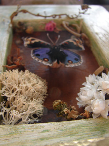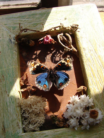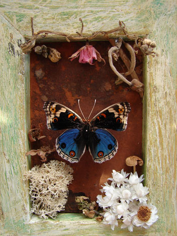 素材:アオタテハモドキ・ドライフラワー・古革
